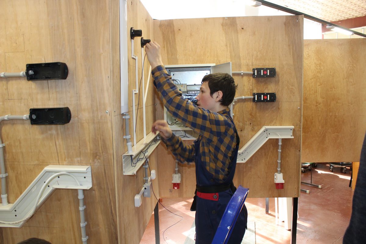 Учащиеся выполняли монтаж схемы силового и осветительного электрооборудования и выполнение наладочных работ после смонтированной схемы участником.