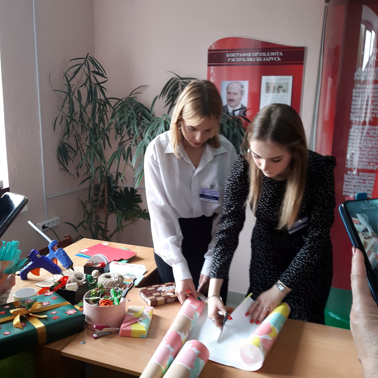 В фойе учебного корпуса учащиеся и мастера производственного обучения провели мастер-классы по декоративному складыванию салфеток и трендовой упаковке подарков.